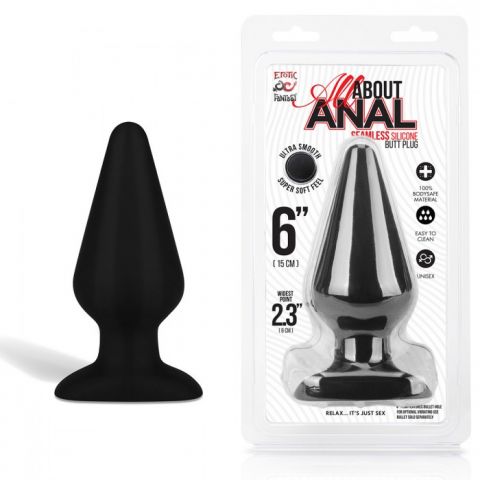 Черный анальный плаг из бархатистого и нежного силикона - гипоаллергенного материала. Пробка имеет уникальную приятную текстуру, которая невероятно приятна на ощупь. В основании плага есть отверстие, в которое можно вставить вибропулю, чтобы добавить дополнительную стимуляцию вибрацией, используйте для этого тальк.
