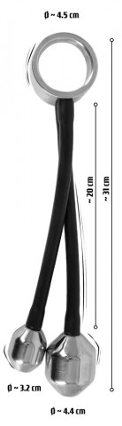 Как использовать эрекционное кольцо с двумя тяжелыми грузиками? Вы надеваете кольцо на пенис и позволяете грузикам с удовольствием свисать или вставляете их в анус. Смазка на водной основе обеспечивает большую эластичность и гладкость.