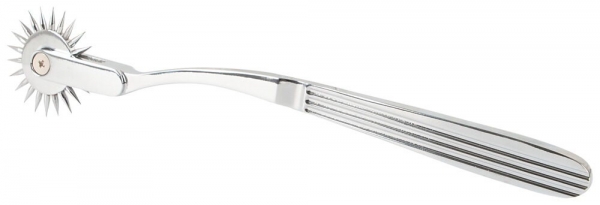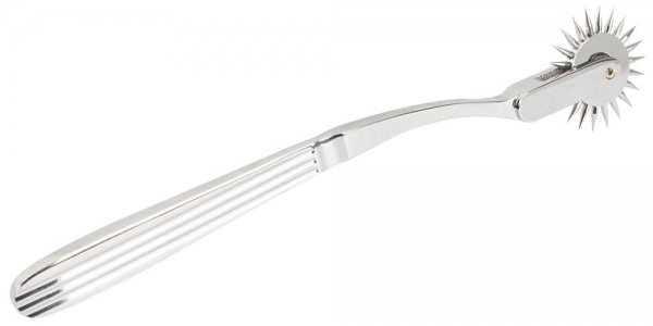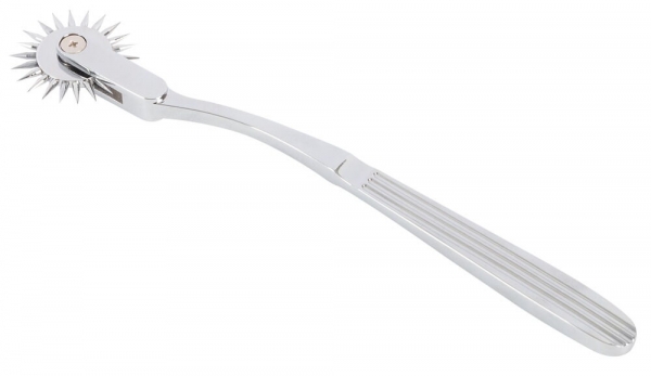 Металлическое колесо с острыми шипами (7 мм) диаметром 3 см, длина рукояти — 18,5 см. Вес — около 59 г. Выполнено из стали и цинкового сплава. При лёгком нажатии создаёт мягкую стимуляцию, при интенсивном — возбуждающую, приятную боль. Высококачественное, прочное, с изящно изогнутой рукоятью для точного и комфортного управления. Идеально подходит для тактильных игр и ролевых сценариев.