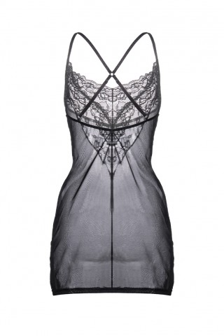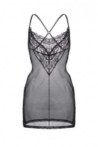 Комбинация Lizaveta от Erolanta® с открытой спиной и роскошной кружевной вставкой в зоне декольте — настоящее воплощение страсти.