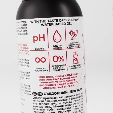 Вкусовая линейка лубрикантов "SGAN" разработана с учетом физиологии, совмещает в себе вкус и аромат, при этом сохраняет все регенерирующие свойства классического лубриканта. Не оставляет липкости, без химического привкуса, не содержит сахара и калорий. Для сладости добавлен натуральный подсластитель - сукралоза. Абсолютно безопасен для проникновения и при проглатывании.