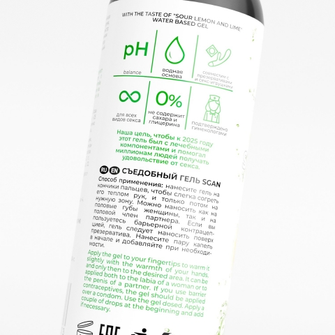 Вкусовая линейка лубрикантов "SGAN" разработана с учетом физиологии, совмещает в себе вкус и аромат, при этом сохраняет все регенерирующие свойства классического лубриканта. Не оставляет липкости, без химического привкуса, не содержит сахара и калорий. Для сладости добавлен натуральный подсластитель - сукралоза. Абсолютно безопасен для проникновения и при проглатывании.