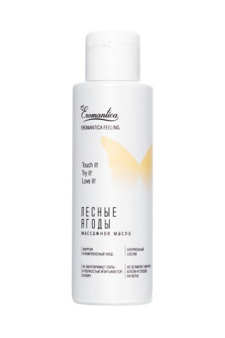 Коллекция натуральных массажных масел Eromantica — это возможность рассказать Ему о своих чувствах. Массажное масло Eromantica «Лесные ягоды» с тонким ягодным ароматом помогает разбудить чувства и создает атмосферу беззаботности и романтики. Его легкая текстура придает каждому движению рук возбуждающее шелковистое скольжение и сохраняет его на протяжении всего сеанса массажа. Микс натуральных масел оливы, миндаля и семян льна интенсивно насыщает кожу жирными кислотами, витаминами и микроэлементами, делая ее бархатистой и восприимчивой к прикосновениям.