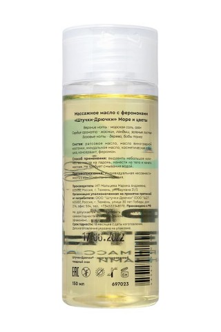 Расскажите о своих чувствах с помощью прикосновений – нежных и легких или страстных и интенсивных. Массажное масло с феромонами "Море и цветы" пробуждает сексуальное желание, снимает усталость и дарит прилив сил для эротического продолжения.