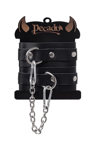 В поисках прочных оков для миниатюрных щиколоток? Тогда обратите внимание на эту модель от российского производителя Pecado. Они идеально созданы для обладательниц узких ножек. С ним вы легко зафиксируете и обездвижите сабмиссива. Каждая деталь аксессуара изготовлена с огромным трепетом вручную. Материал оков мягкий, прочный, не оставляет следов на теле. Крепкие люверсы на каждом ремешке и замок помогают легко расстёгивать и застегивать девайс. Манжеты оков соединяются между собой короткой, металлической цепью.