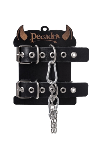 Оковы из одного ремешка от Pecado - отличный помощник, чтобы обездвижить партнера. Материал атрибута – 100% натуральная и прочная кожа. Благодаря полностью ручной работе оковы дарят особую атмосферу ролевым играм. Оковы надежно захватывают щиколотки ног. Не оставляют следов на теле. Пять крепких люверсов на каждом ремешке и замок помогают легко расстёгивать и застегивать девайс. Манжеты оков соединяются между собой металлической цепью, которая легко снимается. С помощью большого кольца и карабинов, возможно соединять к чокеру и другие девайсы. Не ограничивайте себя и свои искушенные фантазии!
