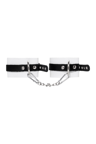 Мягкие оковы с жёсткими ремешками от Pecado помогут обездвижить партнера во время сексуальных прелюдий или жестких БДСМ-играх. Наручники изготовлены полностью из натуральной кожи. Ремешки выполнены из чёрной жёсткой кожи, украшены люверсами. Выделка материала произведена вручную. Ремешки и широкая манжета хорошо держат форму: не тянутся и не мнутся. Качественная металлическая фурнитура добавляет лоска изделию, а аромат натуральной кожи повышает градус возбуждения. Благодаря широкому запасу регулировок, можно подобрать необходимый обхват. Аксессуар удобно застегивать и легко расстегивать. При правильном использовании не оставляет следов на теле и не доставляет дискомфорта. Манжеты оков соединяется между собой помощью двух карабинов и съемной стальной цепочки. Подходит и для женских, и для мужских ног.