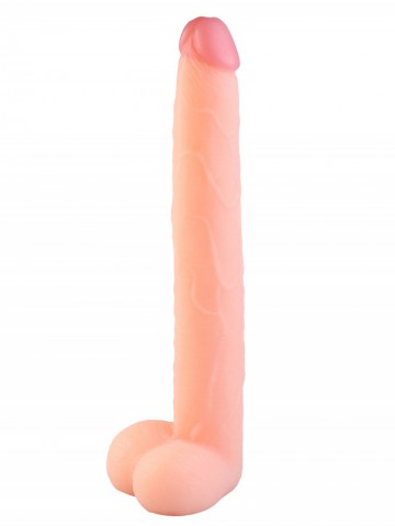 Это невероятно гигантская секс-игрушка для ценителей внушительных размеров члена. Изделие имеет реалистичный внешний вид: текстурированная выпуклыми венами поверхность, ярко выраженная головка и крупная мошонка в целом выглядят в точности, как настоящий пенис мужчины. Вы сможете ощутить не только ощущение заполненности, но и приятную тяжесть.