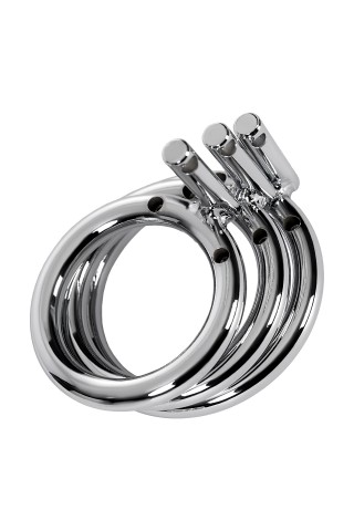 Металлический пояс верности имеет анатомическую форму и снабжен многочисленными отверстиями для гигиены. В комплекте 3 кольца для мошонки разных диаметров. Данный аксессуар отлично подойдет для эротических и ролевых игр. В комплекте также идет замок с тремя ключами.