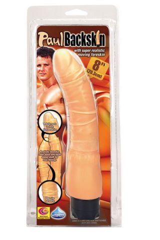 "Paul Backskin" - водонепроницаемый вибратор с регулировкой скорости в форме пениса. Фантастическая движущаяся суперреалистичная крайняя плоть - дополнительный стимулятор. Работает от 2х батарей типа UM3 (AA) (в комплект не входят).