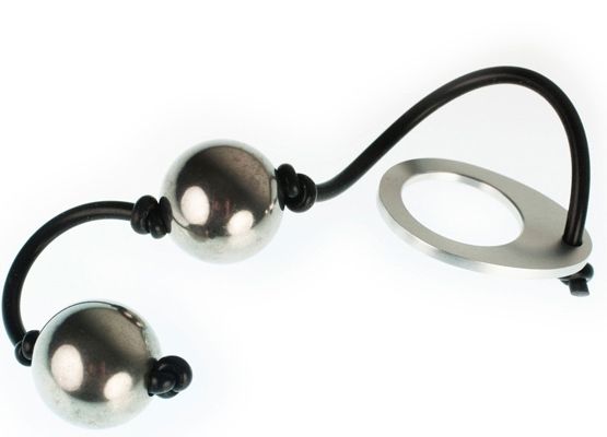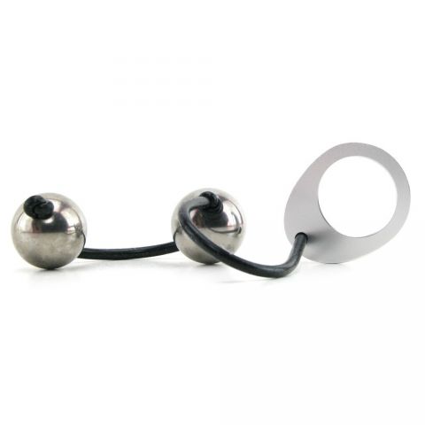 Игрушка выполнена в виде двух стальных шариков, которые надеты на эластичный силиконовый шнурок. На одном конце шнура есть металлическая ручка-кольцо, которая позволит легко извлечь шарики из влагалища.