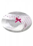 Хлопковые белые трусики увеличенного со специальным кармашком в районе клитора, в который вставляется бело-розовый силиконовый вибратор необычной формы, призванный энергично стимулировать клиторальную зону.
