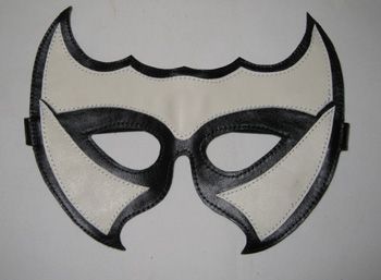 Маска-очки авторской работы выполнены из натуральной кожи с замшевой подкладкой, имеются белые вставки.