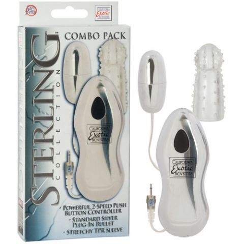 В набор входят серебряное вибро-яичко, мягкая насадка с выпуклыми шипиками и двухскоростной контроллер, который работает от 2 батареек АА. В коллекции Sterling и пульт, и вибростимулятор подходят к любому другому предмету.