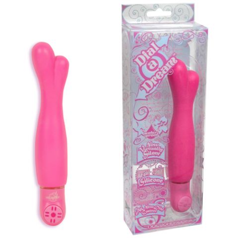Вибратор из коллекции DIAL A DREAM. Выполнен из ярко-розового силикона, водонепроницаемый с удобной и оригинальной регулировкой скорости вибрации. Необычная форма вибратора позволяет также использовать его для стимуляции G-точки. Длина вибратора от пульта управления 15 см, средний диаметр 3 см. Работает от двух батареек типа ААА.