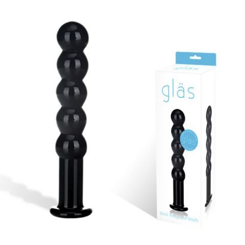 Анальная цепь имеет прохладную и гладкую стеклянную поверхность. Выполнена в черном цвете в виде цепи из бусин. Изделие можно использовать с любыми любрикантами, так как его поверхность очень гигиенична. Максимальный диаметр 3,3см, а длина цепочки 18,5см.