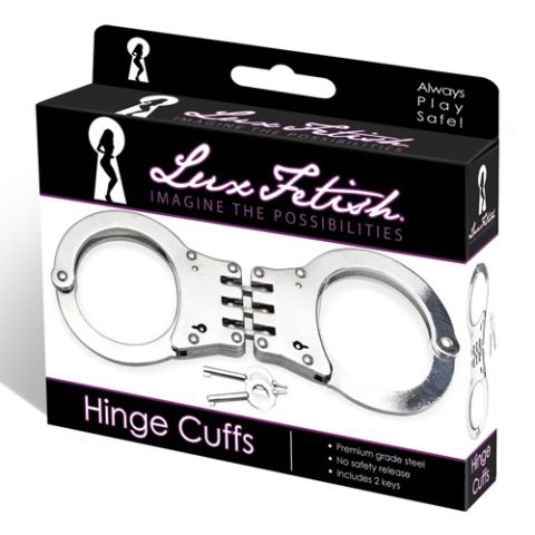 Металлические наручники серебряного цвета без цепочки. Браслеты соединены между собой короткой сцепкой, абсолютно ограничивающей в движении скованного. Универсальный размер. В комплект входят два ключа.