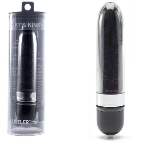 Черный вибромассажер выполнен из пластика и украшен витиеватым розовым рисунком. Имеет перманентный диаметр и встроенный пульт управления, который регулирует три скорости вибрации: от медленной к средней и ускоренной. С помощью дополнительной насадки из пластика, которая накручивается на вибратор, можно увеличить его диаметр на 5мм. Работает вибратор от одной АА батарейки.