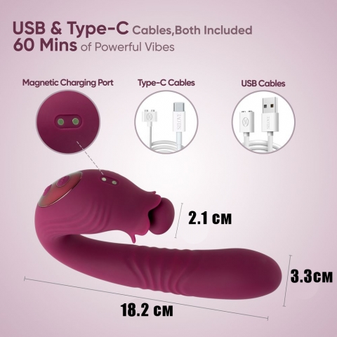 Вращающийся стимулятор клитора работает с высокой точностью, а изогнутый стержень внутри сочетает поступательные движения и глубокие вибрации, ритмично лаская точку G. Каждое движение имитирует прикосновения, которых хочется больше всего: мягкие, неторопливые и постепенно усиливающиеся.