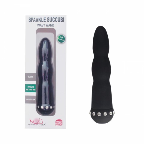 Аккуратный вибратор небольшого размера с рельефной формой. Изготовлен из нежнейшего силикона, бархатистого на ощупь, украшен стразами. Имеет 10 режимов вибрации, которые регулируются кнопкой в основании игрушки.
