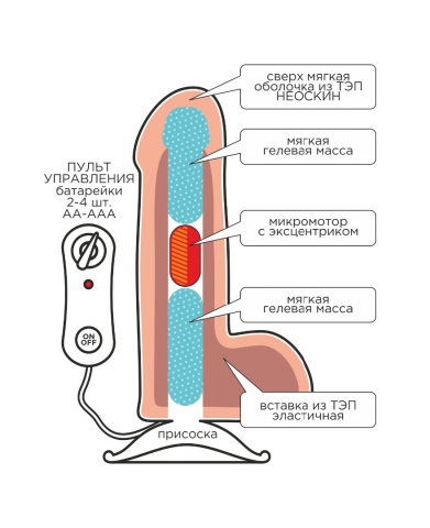 Реалистичная форма и текстура — как у настоящего партнёра 10 режимов вибрации — для точной настройки под ваше желание Мощная присоска — совместима с харнесами и любыми поверхностями Атравматичная конструкция — полужёсткость + сверхмягкость = комфорт при контакте Совместимость с водной смазкой — безопасное использование и защита материала Питание: 2 батарейки ААА (не входят в комплект)
