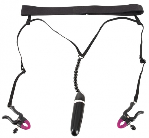 Этот инновационный аксессуар сочетает в себе элементы нижнего белья и интимного стимулятора. Он представляет собой стринги с регулируемыми зажимами, которые аккуратно растягивают половые губы, обнажая клитор для более интенсивной стимуляции. Встроенный вибратор с регулируемой интенсивностью вибрации усиливает ощущения, а ряд стимулирующих бусин дополнительно массирует интимные зоны.